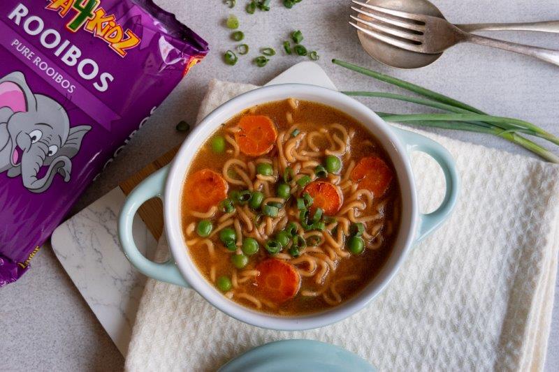 1. In a pot, combine brewed Laager Tea4Kidz Rooibos and instant noodles.