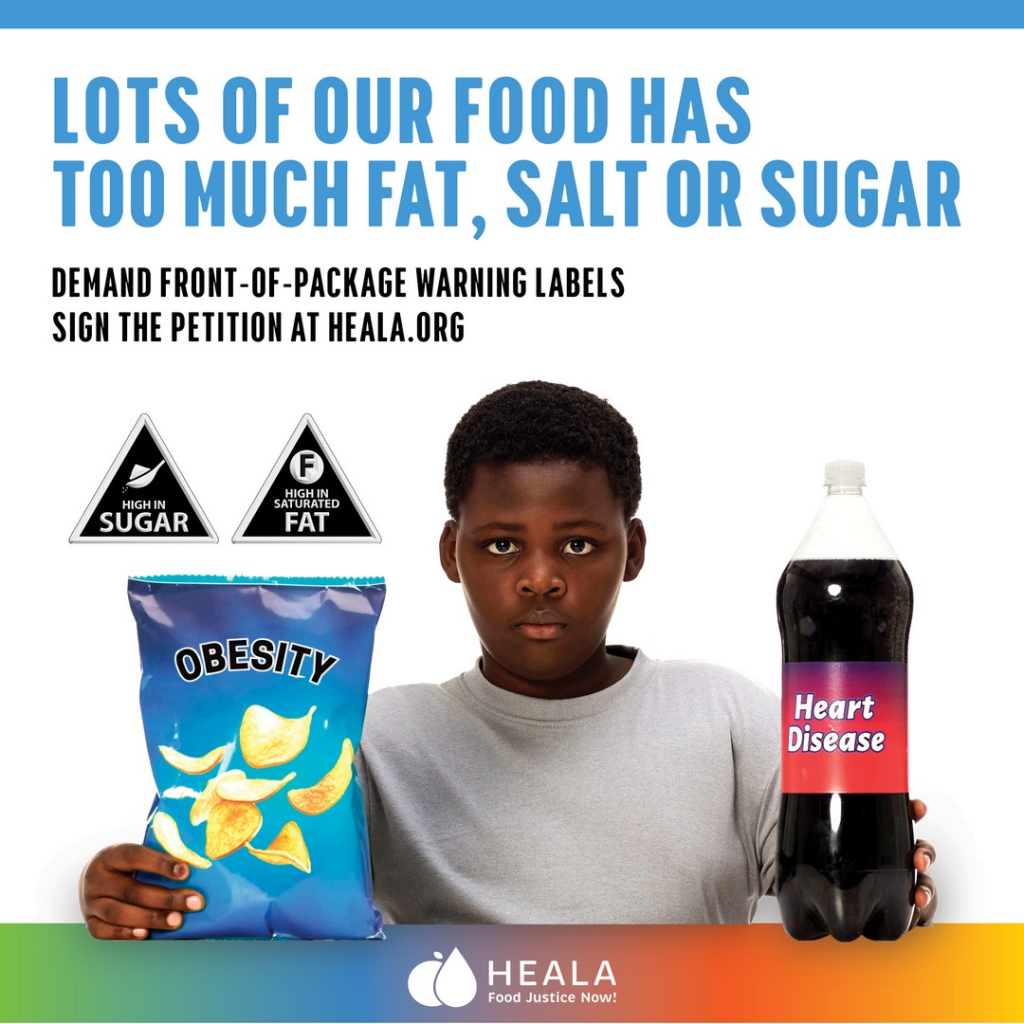 HEALA is calling on the Department of Health to urgently implement mandatory front-of-package warning labels (FoPWL) with simple, clear icons that flag when a product is high in salt, sugar or saturated fat and contains artificial sweeteners. These labels are already making a difference in countries like Chile, Mexico andArgentina, where they have helped reduce the intake and changed the perceived healthfulness of unhealthy food.